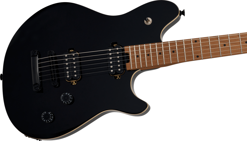 Dual EVH® Wolfgang humbucking pickups mounted directly to the body increase vibration transfer, resulting in sustain for days on end. The black speed tone and volume control knobs have been have been dialed-in to Van Halen's exacting specifications - the smooth-feeling 500k pots make it easy to find a unique sound while retaining the crisp high-end sparkle of the Wolfgang pickups. Now featuring a fixed bridge and stoptail bar!