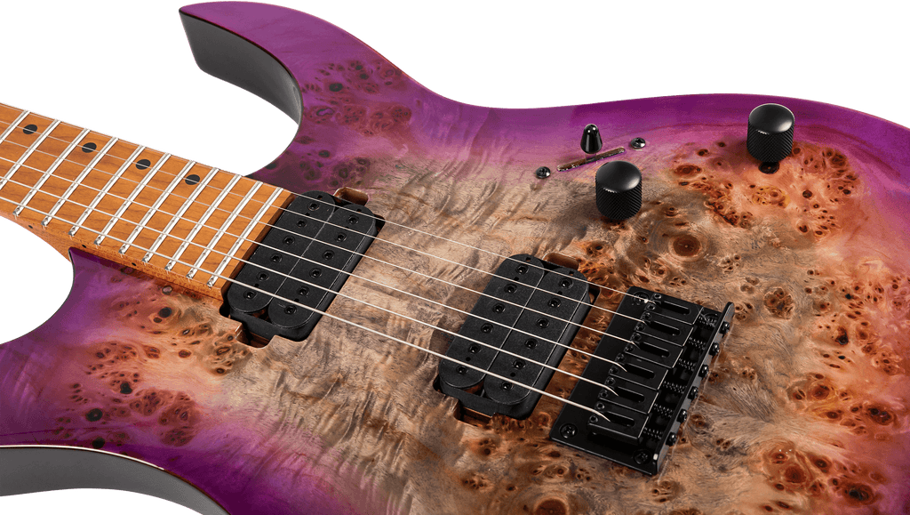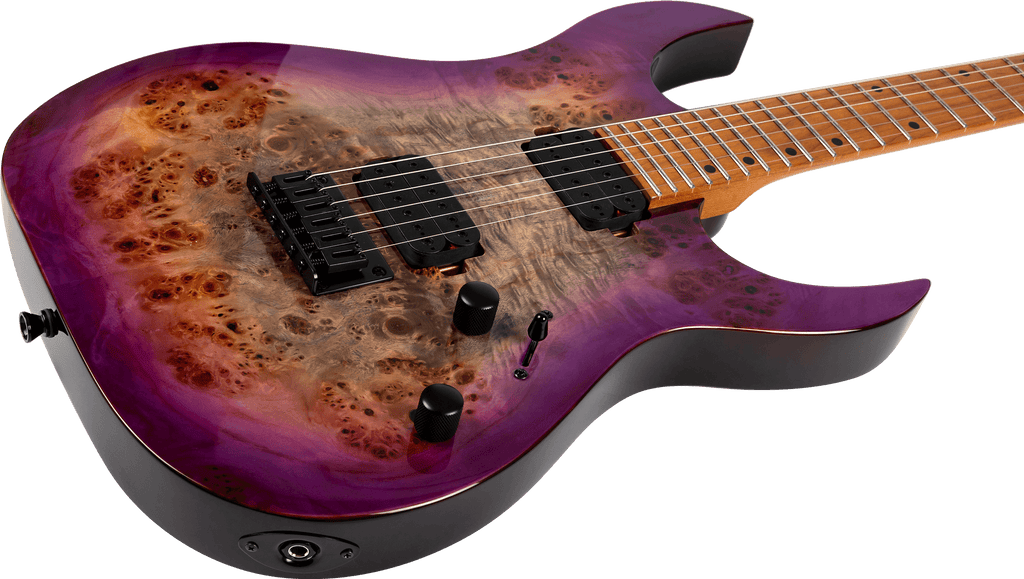 A high-performance rock weapon the S-450 is meticulously crafted for players who demand exceptional tone and spectacular visual appeal. The S-450 features a roasted poplar body combined with stunning gloss maple or spalted poplar tops. Its Canadian roasted maple neck with a modern D shape and matching roasted maple fretboard offers a smooth, fast playing experience, perfect for intricate solos and heavy riffs.